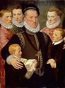 George, Lord Seton et ses enfants en 1572, dont Margaret, Lady Paisley, Robert Seton, Sir John Seton of Barns et Alexander, comte de Dunfermline