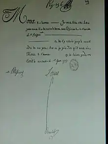 - Lettre de cachet conservée à la bibliothèque de l'Arsenal, archives de la Bastille, 12478, F.203.