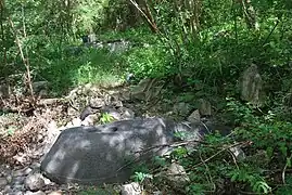 En amont, à quelques mètres de cette roche gravée se trouve un puits daté du , encore utilisé aujourd'hui.