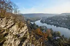 « La promenade de Meuse » le long du chemin de halage de l'autre côté de la Meuse à Wépion est un lieu de passage fréquenté en particulier en été. Les falaises du Néviau sont pour cette raison illuminées pendant la nuit.
