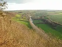 Vue sur la Vire du haut des roches de Ham, vers le sud.
