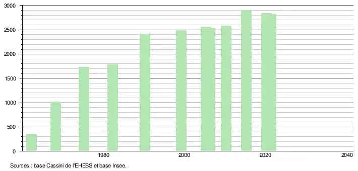 - Population municipale légale en vigueur au 1er janvier 2024, millésimée 2021, définie dans les limites territoriales en vigueur au 1er janvier 2023, date de référence statistique : 1er janvier 2021.
