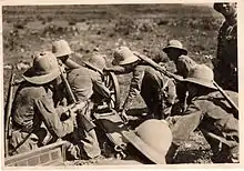 La plupart des populations semi-nomades de l'intérieur ont ensuite été emmenées dans les camps de concentration comme les déportations massives du Djebel (it)[12]. Dans ces camps, le taux de mortalité est très élevé, en raison des terribles conditions sanitaires et d'une alimentation insuffisante, ainsi que de la qualité de l'eau qui coûte la vie à des dizaines de milliers de personnes[13]. Le dans la plaine du Got-Illfù, après avoir été repéré par l'aviation italienne, le chef libyen Omar al-Mokhtar est fait prisonnier. Il est ensuite condamné à mort sur ordre exprès de Pietro Badoglio, à l'issue d'un procès sommaire, le [5]. En mai 1934, Rodolfo Graziani est remplacé en Cyrénaïque par le nouveau vice-gouverneur Guglielmo Nasi.