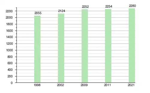 En 2021, le village de Rogowo comptait 2 280 habitants, en augmentation de 10,95 % par rapport à 1998[7]. En 2021, 57,4 % des habitants du village de Rogowo sont en âge de travailler (entre 18 et 64 ans pour les hommes et 18 et 59 ans pour les femmes). 19,6 % des habitants ont moins de 18 ans et 23 % ont l'âge légal de la retraite. Les personnes en âge de travailler représentent 59,5 % de la population de la voïvodie de Couïavie-Poméranie et 59,5 % de la population de Pologne. Ainsi, le taux de dépendance démographique du village de Rogowo est supérieur à celui de la voïvodie de Couïavie-Poméranie et supérieur à celui de la Pologne[8].