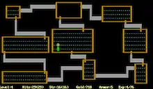- Le jeu nécessite d’explorer un donjon constitué de salles reliées entre elles par des couloirs. Il peut inclure des zones extérieures mais ces dernières sont contraires à l’interprétation de Berlin[8].