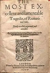 Roméo et Juliette a connu deux éditions au format in-quarto avant la parution du Premier Folio, en 1623. Ces deux éditions sont communément appelées Q1 et Q2. La première édition, Q1, est imprimée par John Danter au début de 1597. Du fait des nombreuses différences entre ce texte et les éditions ultérieures, elle est souvent qualifiée de « mauvais quarto » ; au XXe siècle, l'éditeur T.J.B. Spencer y voit une reconstitution médiocre issue des souvenirs incomplets d'un ou deux acteurs, envisageant qu'il s'agisse d'une édition pirate[16]. Il est également possible que ses défauts soient dus à d'importantes modifications apportées au texte par la compagnie théâtrale qui l'interprète, chose courante à l'époque[17]. Quoi qu'il en soit, cette publication au début de l'année 1597 fait de 1596 la date la plus tardive possible de composition de la pièce[13].