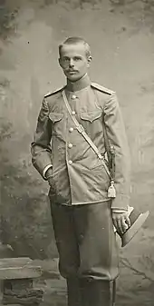 Pendant la Première Guerre mondiale, il combat en Galicie et acquiert une réputation de bravoure. Étant cinq fois blessé, il obtint l'ordre de Saint-Vladimir, de Saint-Stanislas et fut décoré de l'ordre de Saint-Georges.