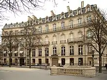 - No 7 : Hôtel d'Espeyran. Hôtel particulier construit en 1888 en style néo-Louis XV par l'architecte Henri Parent[11] pour Félicie Durand (1819-1899), veuve de Frédéric Sabatier d'Espeyran (1813-1864), d'une riche famille de négociants et propriétaires originaires de Montpellier, qui s'installe à Paris avec leur fils Guillaume (1850-1938) après le décès de son mari. L'hôtel est ensuite habité par la comédienne Sophie Croizette (1847-1901), avant qu'elle ne quitte le théâtre[12],[13]. Abrite aujourd'hui le siège de la maison de ventes aux enchères Artcurial.