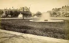 En 1817, un immense jet d'eau, baptisé « la Gerbe » est créé au centre du rond-point[1]. En 1828, une ordonnance royale prescrit d'y élever une statue de Louis XV mais la révolution de 1830 met un terme à ce projet. En 1831, on édifie au centre de la place un grand bassin, beaucoup moins politique, qui reste en place jusqu'en 1854[2] avant d'être enlevé comme gênant la circulation. En 1863, six petites fontaines disposées autour de l'ancien grand bassin sont érigées par Adolphe Alphand. En 1932, René Lalique y crée des jets d'eau en verre, démontés en 1958 à cause de leur fragilité, et remplacés par de nouveaux, conçus par Max Ingrand. Initialement en verre, ils sont rapidement remplacés par des copies en plastique, qui jaunissent au fil des années[3].