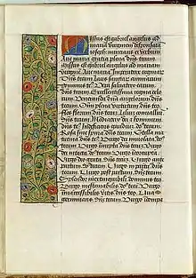 - Dans un Livre d'Heures de Notre-Dame en France de la fin du XVe siècle (1490) on trouve cette louange dans les épithètes et louanges attribuées la Vierge, comme dans les litanies : Flos Florum, Rosa sine spina[27] Fleur entre les fleurs, Rose sans épines.