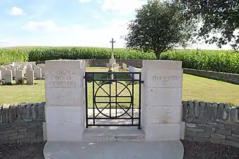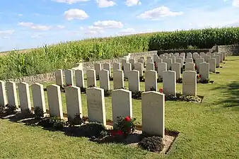 Le cimetière contient 41 sépultures du Commonwealth de la Première Guerre mondiale, dont deux non identifiées. Il y a aussi 70 sépultures de guerre allemandes, dont 42 non identifiées, disposées en sept rangées de dix tombes dans la partie est du cimetière et qui ont été apportées après l'armistice des champs de bataille immédiatement au sud et au sud-ouest du cimetière.