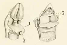 Section longitudinale de Vanilla planifolia. Le rostelum est indiqué par le chiffre 7.