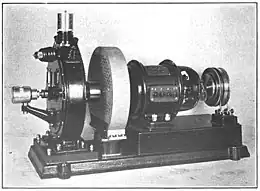 Un générateur à roues phoniques d'un orgue Hammond se compose d'un moteur à courant alternatif synchrone et d'une boîte de vitesses associée qui entraîne une série de disques (ou roues) dentés rotatifs en acier[2]. Chaque roue phonique possède un nombre donné de crans lisses sur le bord ; celles-ci génèrent un signal sinusoïdal de fréquence spécifique lorsque le disque tourne à proximité d'un transducteur de type pickup composé d'un aimant permanent et d'une bobine électromagnétique[note 1].