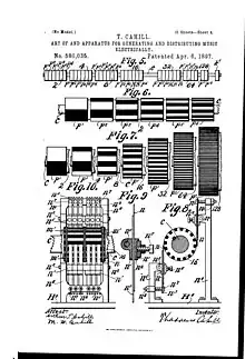 - Brevet US 580035 "Art of and apparatus for generating and distributing music electrically", Thaddeus Cahill, 1896-02-04. Voir les planches du brevet Art of and apparatus for generating and distributing music electrically.