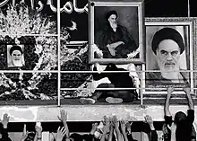 Rouhollah Moussavi Khomeini (en persan : روح الله موسوی خمینی), également retranscrit Khomeiny ou Khomeyni, né le [1],[2] à Khomein (Sublime État de Perse) et mort le à Téhéran (république islamique d'Iran), est un dignitaire religieux chiite possédant les titres d'ayatollah et de seyyed, un homme politique iranien et le guide spirituel de la révolution islamique de 1979 qui renverse le shah d'Iran Mohammad Reza Pahlavi.