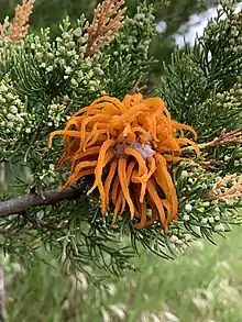 | rouille grillagée du poirier | Gymnosporangium sabinae[16] | GYMNFU |