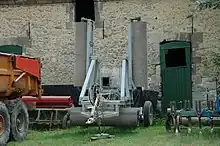 - tasse-avant : rouleau placé à l'avant d'un tracteur entre les passages de roues pour compenser le tassement du aux roues du tracteur ; complète avantageusement les imposantes masses avant nécessaires à l'équilibrage des trains de semis portés ; les éléments tasseurs sont des roues à pneus.