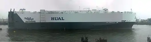 En septembre 2015, venant du port d'Anvers, arrive au Havre le plus gros navire roulier : avec 8 500 véhicules transportés, le Höegh[1]Target New Horizon [2], de 199 mètres de long, dépasse tous les navires rouliers habituels. Il fera 80 escales par an au Havre, premier port roulier français [3]. Ayant chargé en 24 heures 800 voitures françaises, Peugeot et Renault, il lève l'ancre pour Southampton, puis fait escale à Santander (Espagne), et à Tanger (Maroc) pour charger des voitures fabriquées au Maroc et en Turquie [4]. Il va toute l'année du Havre à La Réunion [5].
