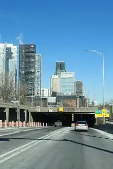 Autoroute Ville-Marie vue du boulevard Saint-Laurent, février 2017 | ||||||||