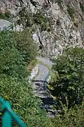 Vue des lacets de Montvernier avec la chapelle de la Balme au sommet. | ||