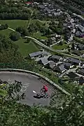 Aussi, pour effectuer une distance orthodromique de 700 mètres, la route s'étend sur une longueur de 3 350 mètres. Dans les lacets, sa largeur est de 4 mètres et sa déclivité moyenne de 7,56 % pour une déclivité maximale de 10 % sur 53 mètres[2].