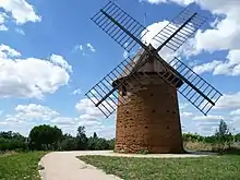 Le pont sur le Touch est construit sur les ordres des États de Languedoc, qui en prennent la décision en 1765. Il s'inscrit dans un vaste plan d'amélioration de la voirie et de la circulation. C'est Joseph-Marie de Saget, ingénieur des États, qui en dresse les plans en 1772. Le pont est achevé en 1775[8]. - moulin à vent.