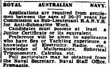 - (en) « Enrolment in R.A.N.V.R. », The West Australian, Western Australia, , p. 9 (lire en ligne, consulté le )