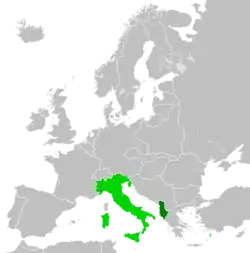 Le , quelques mois avant le début de la Seconde Guerre mondiale, l'Italie envahit l'Albanie ; après une courte résistance de la part des troupes albanaises, le roi Zog Ier prend la fuite. Le régime de Benito Mussolini réalise ainsi en Europe une expansion territoriale comparable à celle accomplie par Adolf Hitler lors de la création du protectorat de Bohême-Moravie, en annexant des territoires ayant jadis fait partie de l'Empire romain et de l'Albanie vénitienne. Le roi d'Italie, Victor-Emmanuel III, est proclamé souverain d'Albanie ; le pays est promis à une politique de colonisation et d'italianisation, des Italiens étant invités à s'y installer. 11 000 colons italiens s'établissent en Albanie, de même que 22 000 travailleurs temporaires.