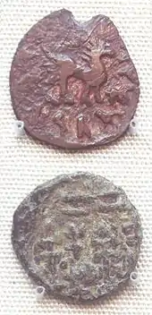 Les pièces de monnaie khotanaises datées du Ier siècle apr. J.-C. portent toutes deux inscriptions, une en chinois et l'autre en prakrit gandhari utilisant l'alphabet kharoshthi, ce qui montre les liens de Khotan avec l’Inde et la Chine à cette époque[17].