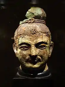 Au IIe siècle, un roi de Khotan a aidé Kanishka, l'empereur le plus connu de l'Empire kouchan, a conquérir la ville de Saket, un point stratégique d'un des nombreux royaumes indiens[lower-alpha 1] :