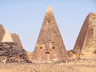 Nécropole de pyramides royales à Méroé. Bien qu'on assiste au IIIe siècle à un bref retour de la nécropole royale à Napata, qui doit correspondre à une reprise d'influence de la région du nord du Soudan par le royaume de Koush (probablement au moment où les lagides perdent leur suzeraineté sur la Haute-Égypte), celle-ci est en fait officiellement à Méroé.