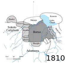 Le royaume de Bornou est un état existant préalablement et ayant conquis le Kanem au XVIe siècle, les deux royaumes ainsi réunis sont collectivement référés en tant que royaume du Kanem-Bornou.