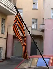 Chaque année depuis 2005 la veille du 9 mai, Jour de la Victoire, des milliers de rubans (appelés par la forme diminutive георгиевская ленточка, gueorguiïevskaïa lentotchka) sont distribués gratuitement dans les rues de Moscou[1]. Ils renvoient à la médaille soviétique « Pour la Victoire sur l'Allemagne dans la Grande Guerre patriotique 1941-45 » et sont devenus un symbole du patriotisme arboré ostensiblement.