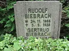 Pierre tombale de Rudolf Biebrach et de sa deuxième épouse, née Gertrud Wiesel.