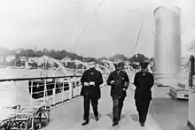 Bernhard von Bülow, Guillaume II et Rudolf von Valentini (de gauche à droite) à bord du Hohenzollern à Kiel, 1908