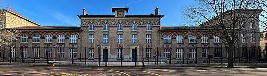 - Collège Jean-Jaurès, construit en 1933-1934, qui intégre les bâtiments du Groupe scolaire du Centre, école créée en 1883[3], et d'un ancien gymnase destiné aux pompiers[4]. Ce gymnase fut construit en 1902 par l'architecte César Auguste Mancel[5].