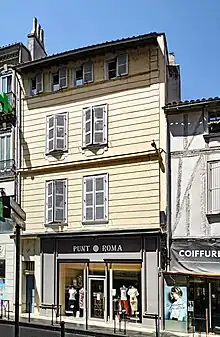 L'immeuble, de style néoclassique, est construit dans la première moitié du XIXe siècle, probablement peu après 1830 lors du réalignement de la rue. Le rez-de-chaussée est percé d'une ouverture de boutique et d'une porte, mise en valeur par une imposte et un encadrement de fins pilastres cannelés à chapiteaux doriques qui soutiennent une corniche. Le 1er étage a été transformé par le percement de deux grandes ouvertures et l'ajout d'un balcon en béton. Au 2e et au 3e étage, les fenêtres, séparées par des tables et surmontées de fines corniches, possèdent des garde-corps en fer forgé[37].