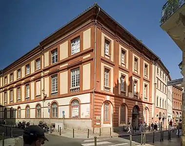 En 1962, l'architecte Paul de Noyers réalise une première surélévation. En 1970, il est chargé de la construction d'un vaste bâtiment sur la rue Charles-de-Rémusat, provoquant la disparition des deux pavillons d'entrée, pour accueillir un logement de fonction, des bureaux, une salle de réunion et un réfectoire. La façade, longue de onze travées, est en brique. Elle est rythmée par de hautes fenêtres rectangulaires regroupées aux deux premiers étages par des encadrements débordants. La haute porte, dans la 5e travée, est surmontée d'une croix toulousaine. En 1984, l'architecte Pierre Glénat est chargé de la surélévation du 3e étage[36].