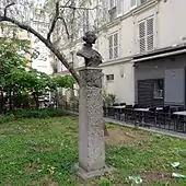 Un buste en bronze de la femme de lettres, dû au sculpteur Décio Villarès (1851-1931), se trouve à l’entrée de la voie, au bord du boulevard Beaumarchais. La petite rue est piétonne, se terminant par un escalier descendant vers la rue Amelot et son centre est occupé par un bosquet devant lequel est érigé le buste.
