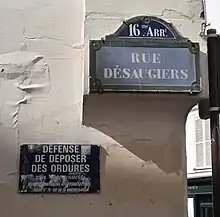 La rue Désaugiers est une voie publique située dans le 16e arrondissement de Paris. Elle débute au 9, rue d'Auteuil et se termine au 6, rue du Buis.