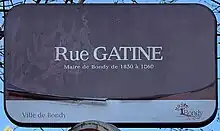 Cette rue est nommée en hommage Antoine Hyacinthe Gâtine, maire de la commune de 1823 à 1830[1]. Ambroise Magloire Gâtine, dont le fils Adolphe Ambroise Alexandre Gatine était avocat au Conseil d’État et à la Cour de cassation, lui succéda de 1830 à 1860[2].