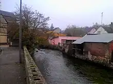 Vers la rue de Vernon , lavoir du XIXe siècle en bon état de conservation et église évangélique en architecture minérale[9]