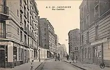 La rue Godillot à Saint-Ouen-sur-Seine, vers l'ouest. La gare de Saint-Ouen-sur-Seine est visible sur la gauche. | ||||