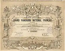 — À cette même adresse, la S.A. du Grand panorama national français, constituée à l'initiative du peintre panoramiste Charles Castellani (1838-1913) à Bruxelles le [8] inaugure une rotonde (1881, Seyrig ingénieur) avec l'exposition de la toile panoramique circulaire monumentale La Défense de Belfort (1881) créée par Castellani lui-même qui est actionnaire et l'un des administrateurs de la société. Le « Grand panorama » du 26 rue de Bondy accueille ensuite Le Dernier jour de la commune (1883), également peint par Castellani, comme l'atteste une affiche de Léon Choubrac.