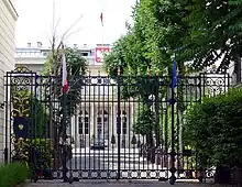 - No 53 : hôtel Kinsky. Il ne reste rien de l'hôtel construit en 1769 par Claude-Nicolas Ledoux pour la présidente de Gourgues. L'hôtel actuel, extrêmement remanié, comprend au rez-de-chaussée un grand salon qui a conservé un décor XVIIIe siècle exécuté pour la princesse Kinski, propriétaire en 1773, notamment un plafond peint en 1779 par Simon Julien. En 1801, l'hôtel est loué pendant trois ans à l'écrivain anglais William Beckford. Il appartient ensuite au maréchal Lannes. Au XIXe siècle, il est la résidence de l'écrivain Charles de Pomairols (1843-1916) qui y tient un salon littéraire. Il est acheté en 1919 par le banquier Louis Louis-Dreyfus, qui réalise des travaux dans le bâtiment sur rue. Réquisitionné sous l'Occupation, l'hôtel devient propriété de l'État en 1945. Après avoir abrité des services du ministère de la Culture (direction de la musique, de la danse, du théâtre et des spectacles), il est mis en vente par l'État en et acheté par le cheikh Hamad ben Jassem Al Thani, membre de la famille régnante du Qatar, pour la somme de 28 millions d'euros, soit la moitié de l'estimation[6]. Édifié sur une parcelle de 4 137 m2, l'hôtel d'une superficie de 3 509 m2 comprend un parc paysager de 2 400 m2 avec grotte artificielle et pièce d’eau.