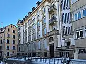 - De style éclectique[1], le bâtiment historique de l'établissement scolaire a été construit sur le terrain des anciens nos 10, 12 et 14, démolis vers 1905, tandis qu'une partie du terrain était réunie à la voie publique. Sur l'emplacement du no 12 se trouvait une maison dont la porte cochère portait le millésime 1687[5],[2].