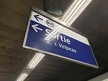 Panneau dans la gare d'Antony indiquant la rue Velpeau.