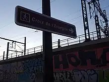 Panneau de la Croix de l'Évangile, à l'intersection des rues d'Aubervilliers, de Crimée et Gaston-Tessier, au niveau du quartier Rosa-Parks.