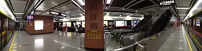 Établie en souterrain, la station Route Tongji se situe entre Parc Jihua, en direction du Nouveau centre-ville de l’est, et le Temple ancestral, en direction de Lijiao (zh).