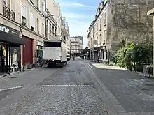 Rue de la Charronnerie, vers le sud. L'immeuble au fond, situé au coin de la rue de la République, est toujours présent.